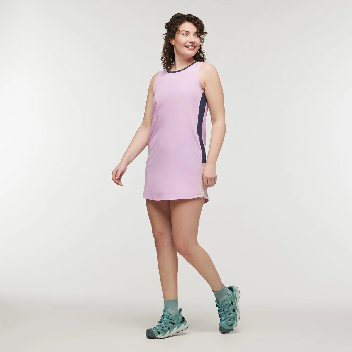 Change it up with a lightweight dress that can handle it all, from farmer's market jaunts and dog walks to the longest of travel days. Made from an anti-static, wrinkle-resistant recycled polyester blend, this racerback dress is designed to be worn over a sports bra, with a mid-thigh length perfect for all-day wear.